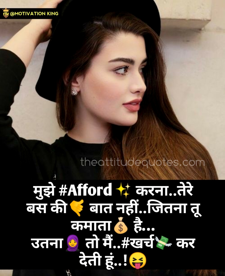 Attitude Shayari For Girls In Hindi - 100+ awesome images & text shayari in hindi. Attitude Shayari For Girls In Hindi - Attitude shayari for girls are shayaris for girls for whatsapp status and facebook status.
