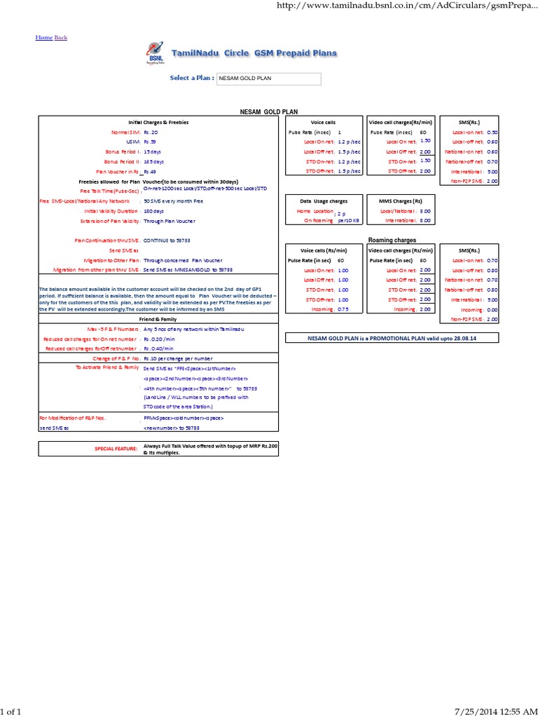 Bsnl Nesam Gold Plan Tamilnadu Prepaid Mobile Plan Offers Seconds As Free Talktime - Bsnl announced noe new and 2 revised plans including rs.49 plan!