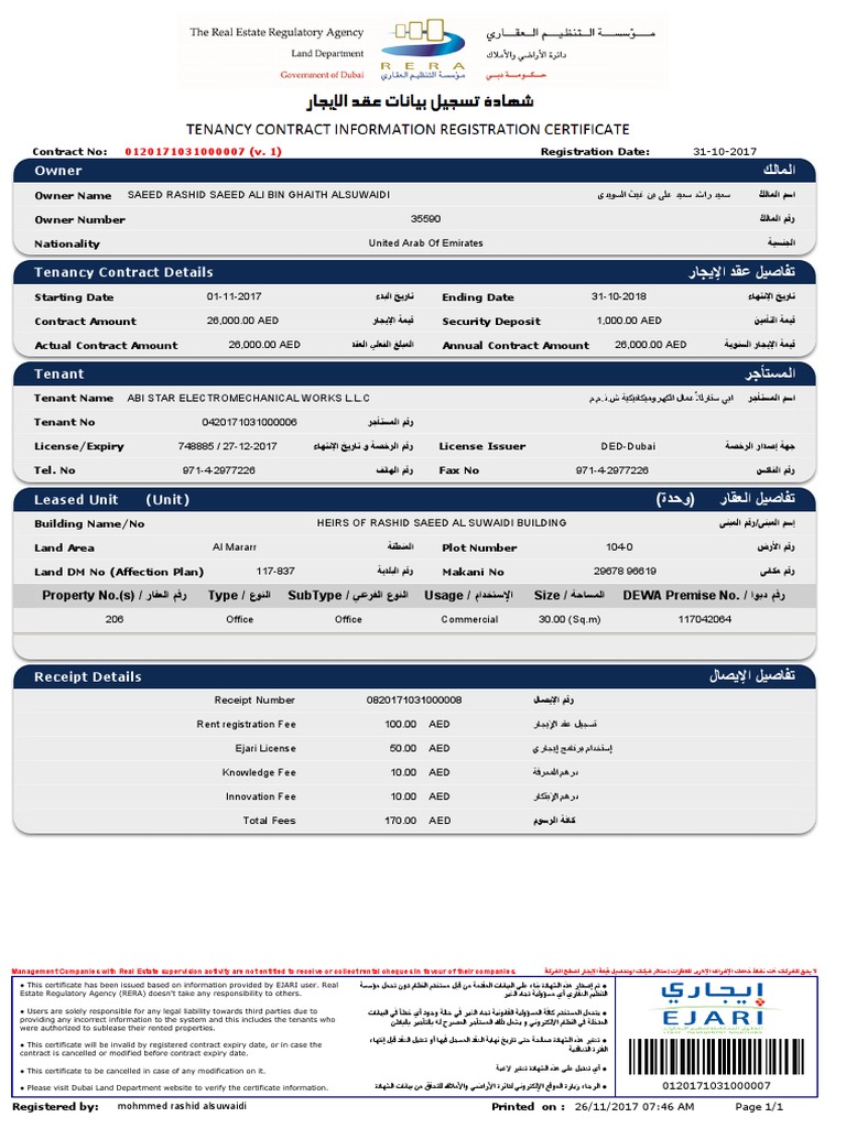 Ejari 2017 Abi Star Leasehold Estate Lease - In case the ejari certificate is still valid and has not expired.