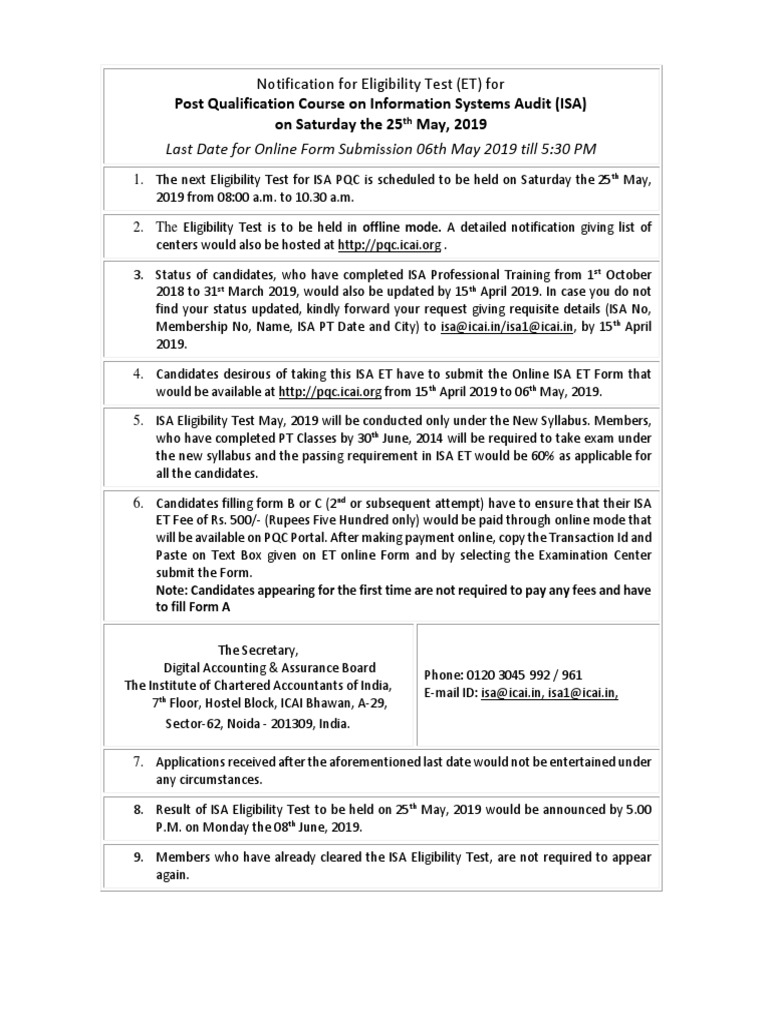 Ca Rohit Kapoor On Twitter Eligibility Test For Isa For Members Of Icai To Be Held In Online Mode On 28th Nov 2020 Notification Released Welcome Move By Institute Https T Co 4cjir4n5n8 - The isa pqc is a course on auditing of information systems.