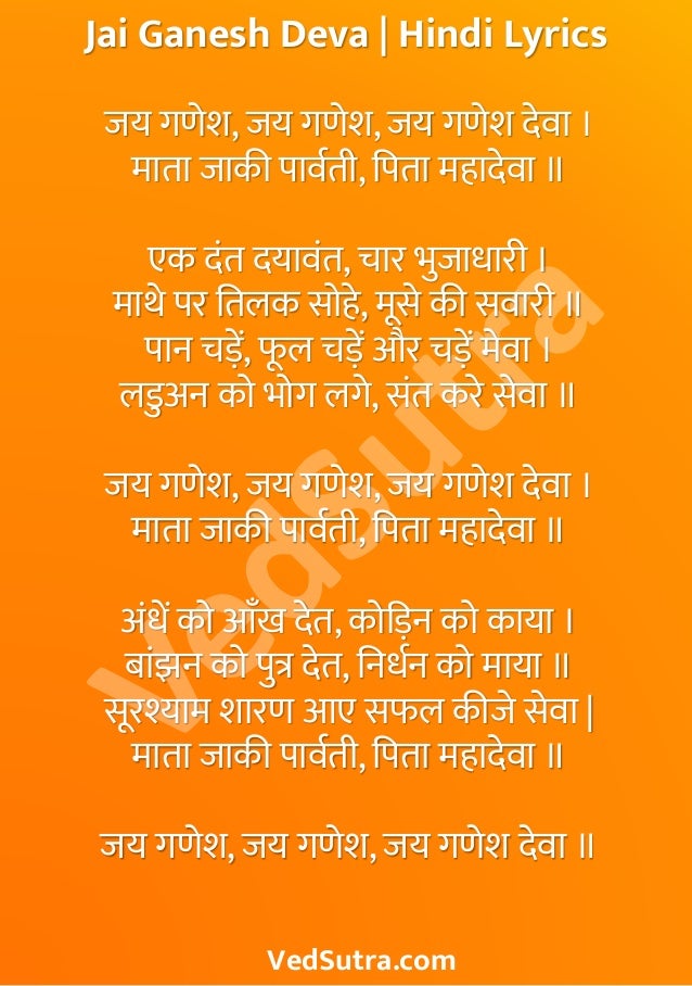 Ganesh Aarti Lyrics In Hindi English Pdf Free Download - Jai ganesh jai ganesh deva aarti.