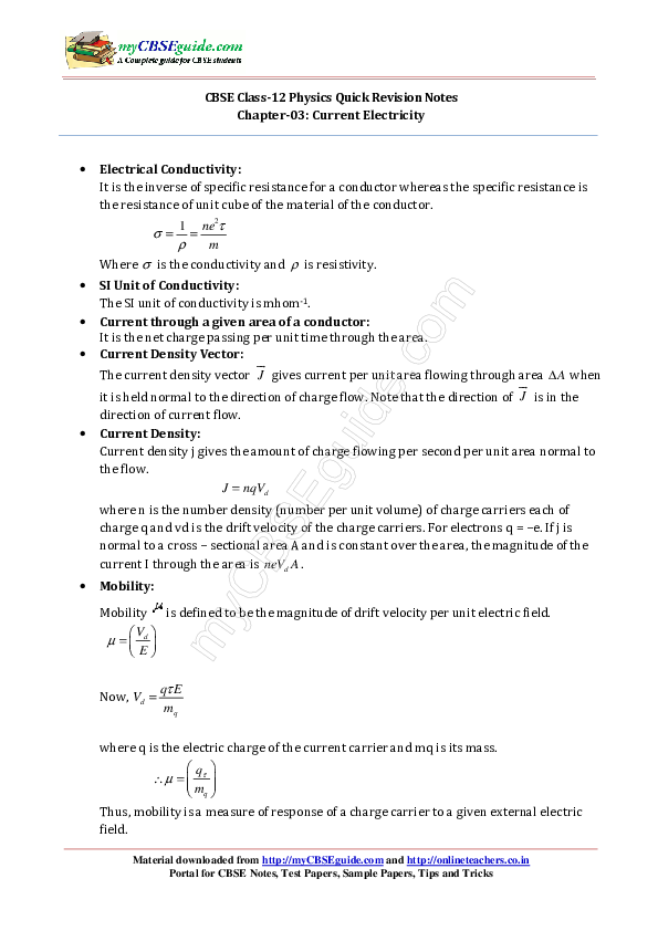 Pdf Cbse Class 12 Physics Quick Revision Notes Chapter 03 Current Electricity Sr Im Academia Edu - Download cbse class 12 physics study material in pdf format.