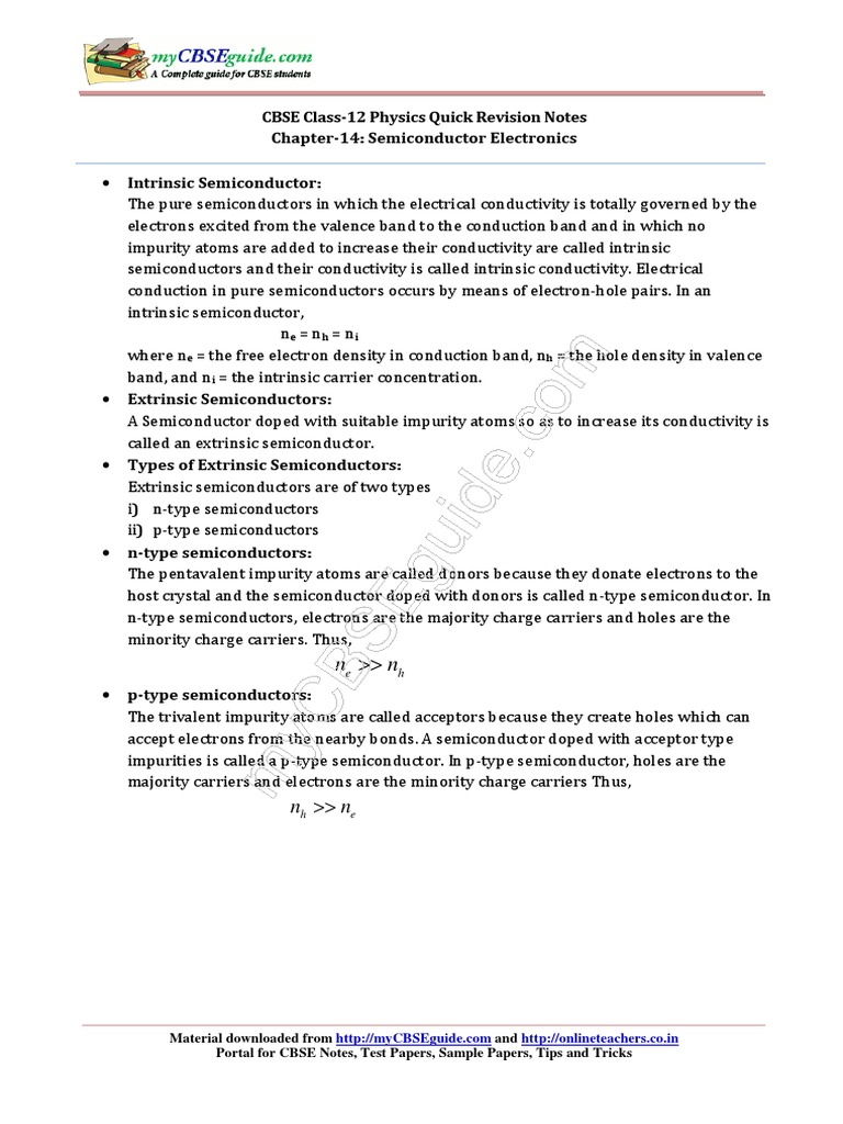 12 Physics Notes Ch14 Semiconductor Electronics P N Junction Semiconductors - Jam through all of them as quickly as you can.