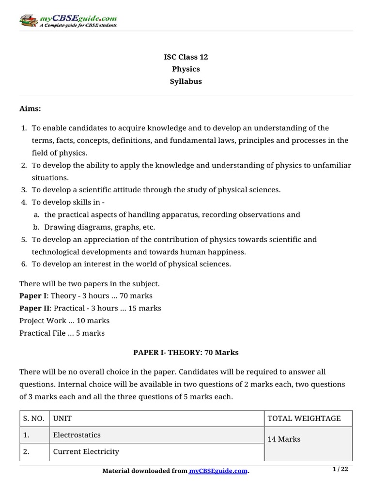 Isc 12 Physics Sylllabus 2019 Nuclear Physics Electric Field - Class 12 physics subject electric current, flow of electric charges in a metallic conductor, drift velocity, mobility and their relation with electric current;