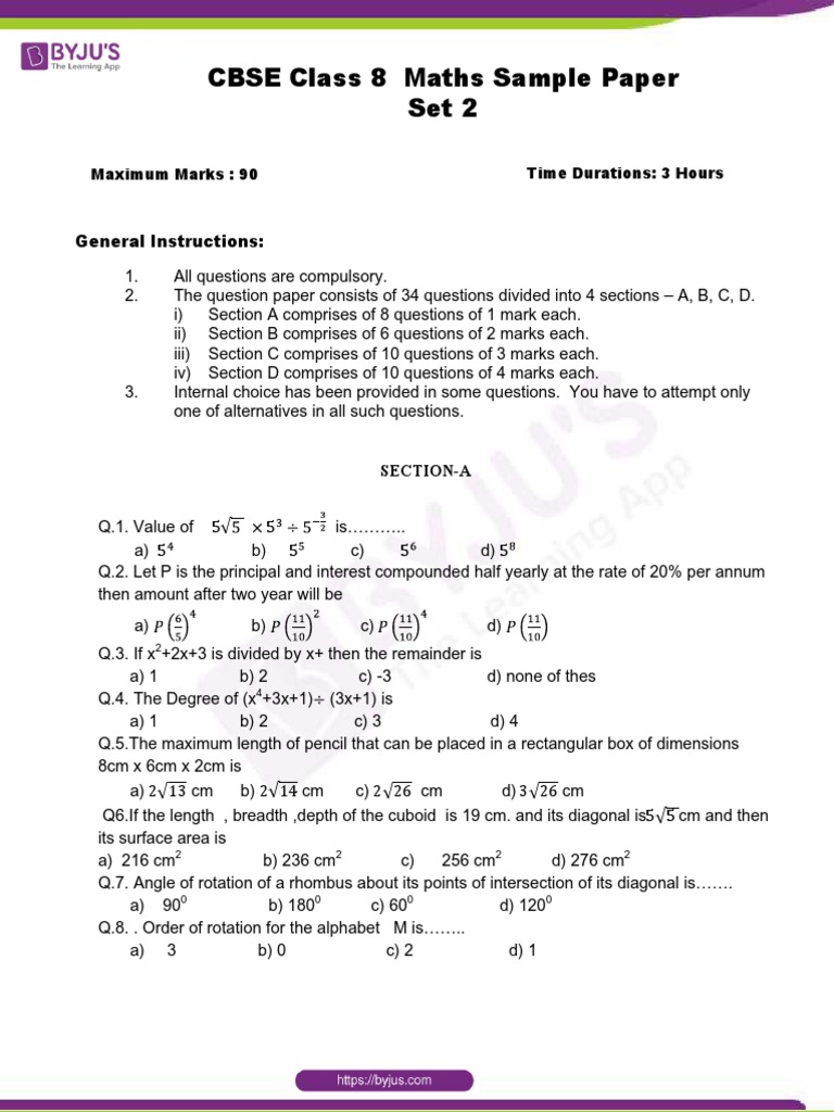 Mycbseguide Class 8 Maths Sample Papers : Cbse new sample papers 2021. Mycbseguide Class 8 Maths Sample Papers / Learning is not complete without a revision and revision is never done without solving sample papers.
