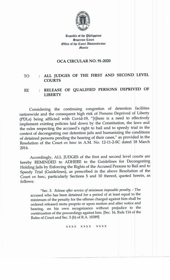 Mike Navallo Auf Twitter Amid Covid19 Pandemic Sc Court Ad Midas Marquez Instructs Trial Court Judges To Comply With 2014 Jail Decongestion Guidelines By Releasing On Their Own Recognizance Detainees Who Have - Meaning of release on recognizance as a finance term.