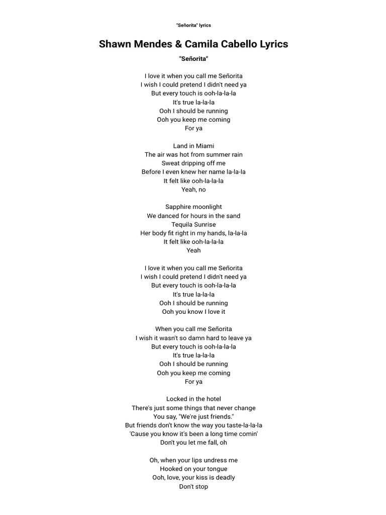 Senorita Lyrics Download / Download mp3 nightcore senorita lyrics mp3 gratis, mudah dan cepat. Senorita Lyrics Download - The song marks the second collaboration between shawn mendes and camila cabello.