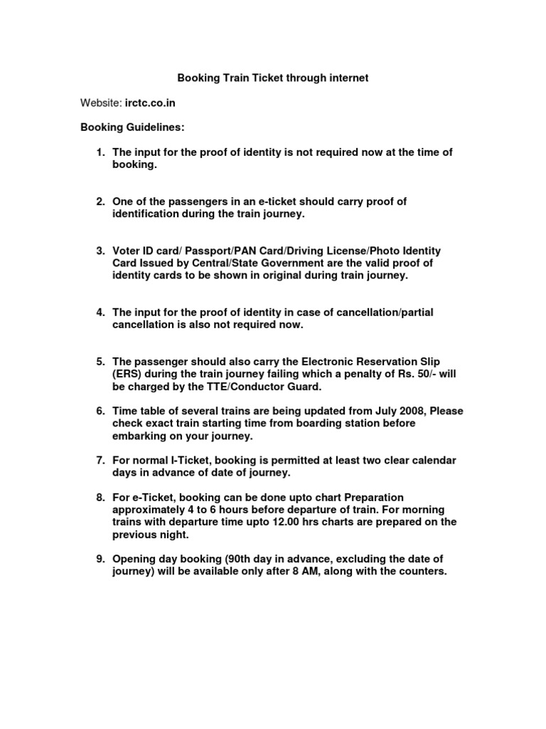 Railway Booking Guide Identity Document Ticket Admission - What is a trains chart.