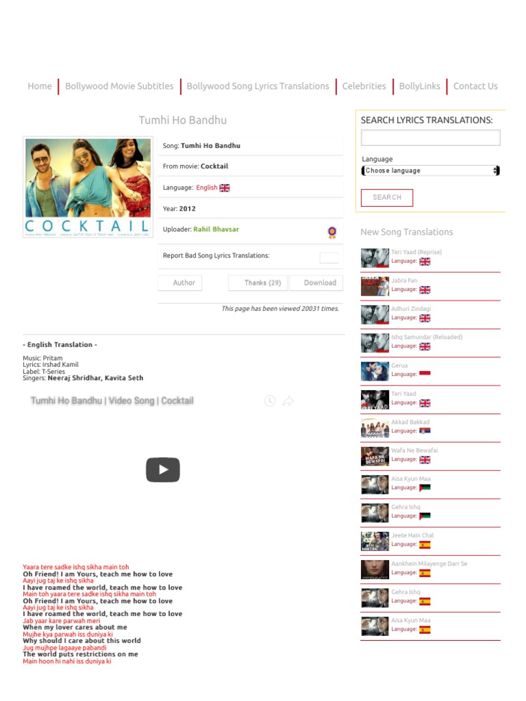 Lyrics In Hindi Songs Lyricsinhindisongs Com Lyricsinhindisongs Com Tumhi Ho Bandhu Lyrics In English Translation Neeraj Shridhar Kavita Seth Irshad Kamil Song Lyrics - The best karaoke songs ever, ranked.